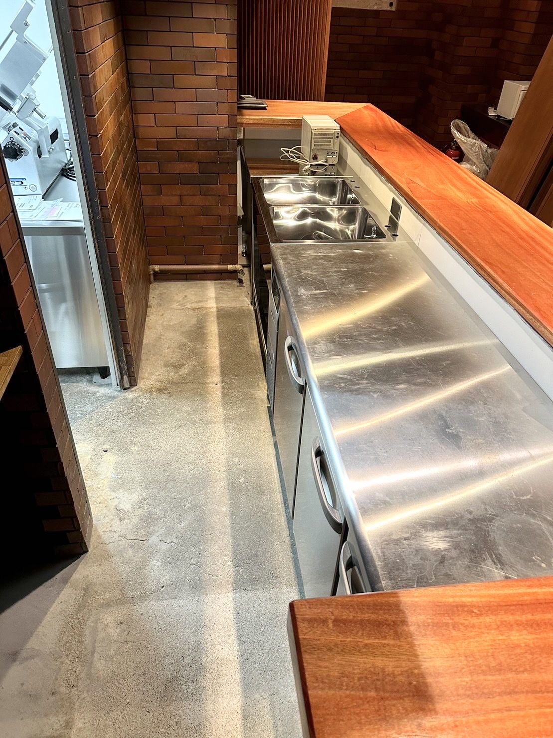 ・厨房壁ステンレス貼り